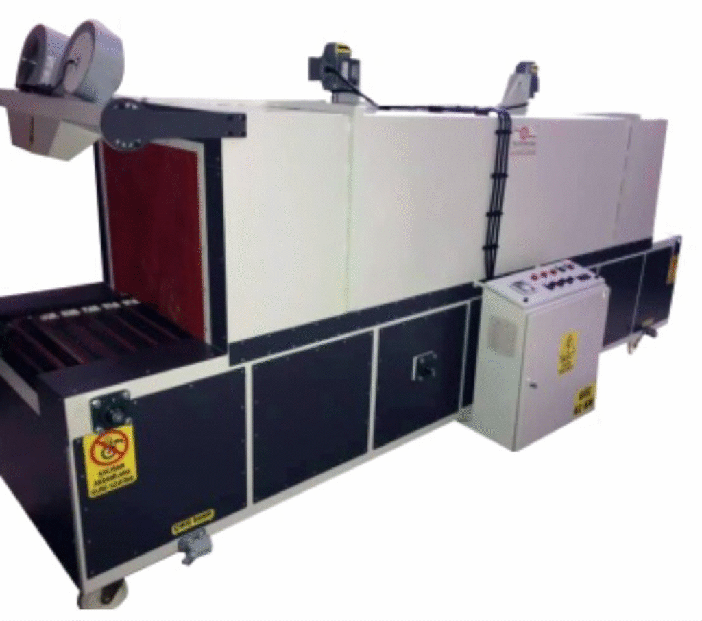 Sarım işlemi bitmiş, shrink naylonuna sarılmış halının ,ısı tünelinden geçirilerek ambajlanmasının tamamlanması için kullanılan makinedir. Zincir – dişli tahrikli ve silikon kaplı milden oluşan bant kullanılmıştır.Hız kontrol üniteli ve dijital ısı kontrolü ile çalışmaktadır. Ters sarım yapılmış halılarda yapışma olmaması için teflon kaplamalı miller kullanılmaktadır. Rezistanslar ile ısı gücü arttırılmıştır.